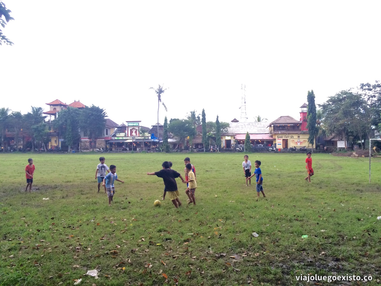 En nuestros 4 días de estancia en Ubud nos dimos 4 masajes, nuestro dilema diario era si elegir de cuerpo entero, sólo espalda, o por el contrario pies o cabeza. Marcio también aprovechó para quitarse el mono futbolero, y meterse en un campo de césped donde habían montado un partido. Al pobre le duró poco la diversión, porque a los 10 minutos de unirse cayó el diluvio universal y tuvimos que volver empapados los 3 a casa.