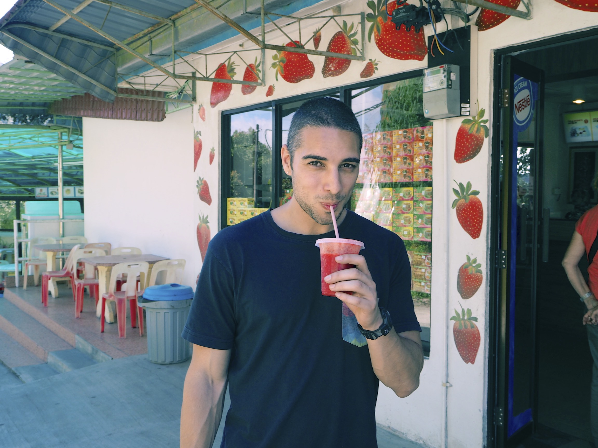 - Mercado de frutas y vegetales: Los que me conocen pueden imaginarme. Lo mismo que cuando entro a supermercados, en mi salsa. Me encantó, por el ambiente que se respiraba, por la cantidad de hortalizas nuevas que no había visto nunca, y por las fresas más dulces y sabrosas que he probado jamás. Marcio y yo nos comimos dos cajas en un santiamén, un espectáculo para el paladar.