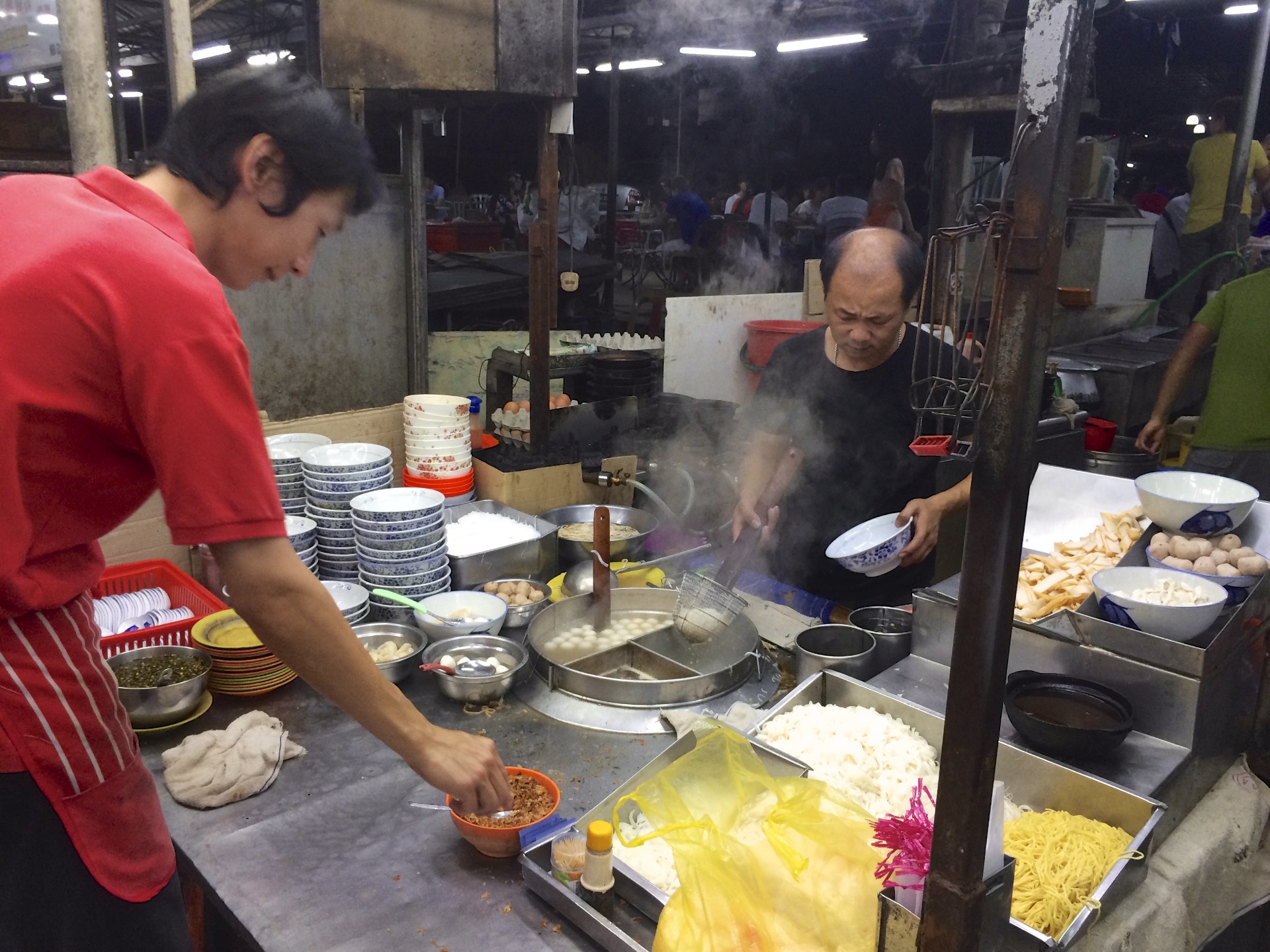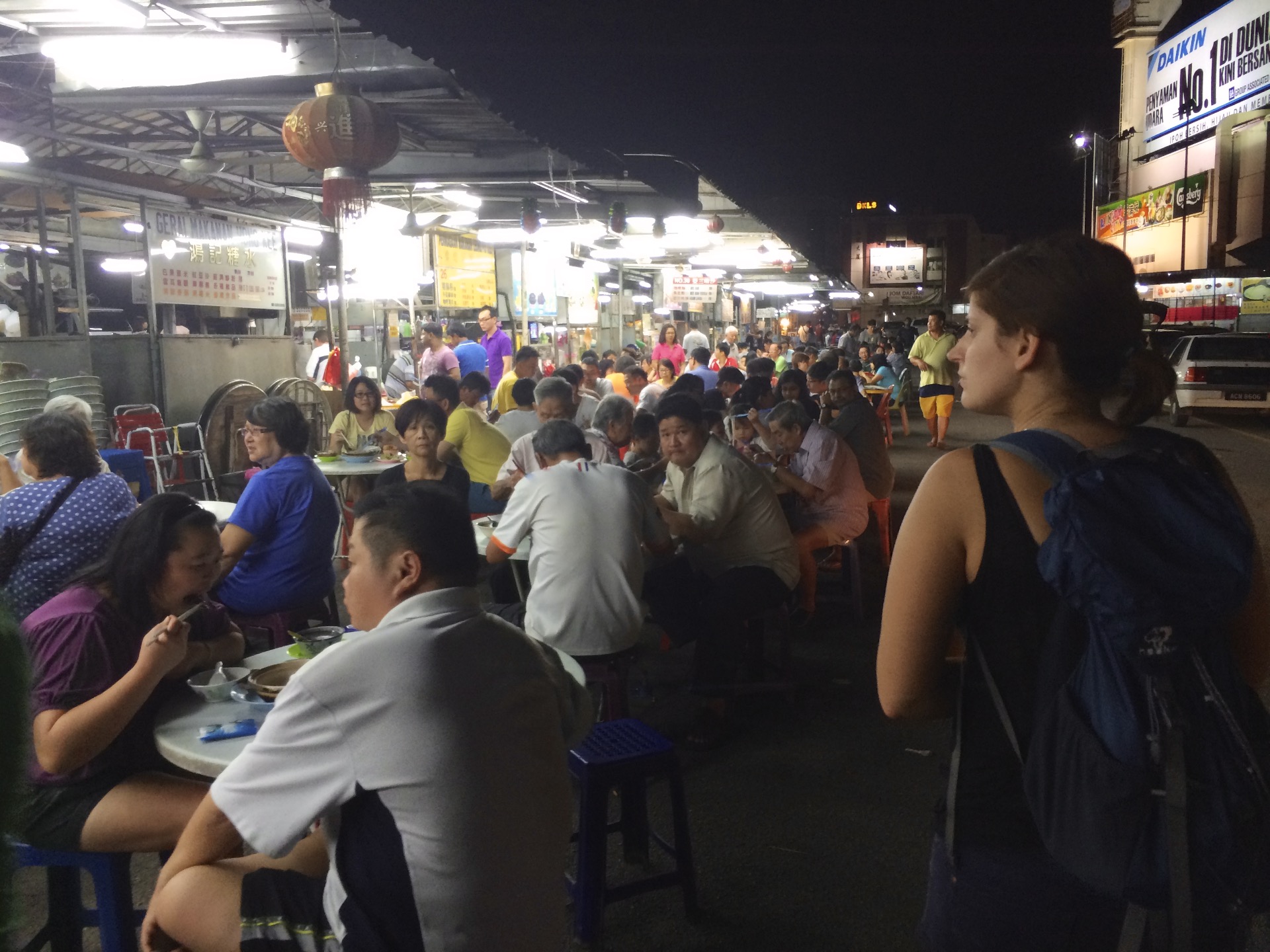 A la hora de cenar nos decidimos a ir a una calle llena de puestos de comida que habíamos visto durante el día, llevaban un ritmo frenético ya que todo estaba lleno de malayos degustando platos muy diferentes, principalmente sopas, pero preguntando un poco aquí y allá (más bien haciendo señas porque esta gente no hablaba inglés) conseguimos un sitio y pedir algo típico (una sopa de noodles con fish balls, verduras, carne, huevo y demás). Sin duda fue una experiencia muy auténtica aunque algo caótica.