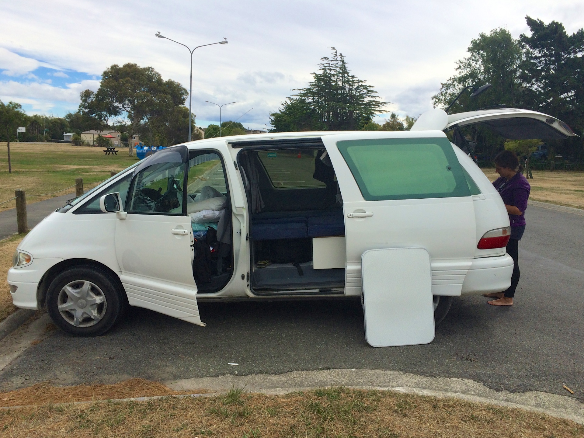A eso de las 10 nos vinieron a buscar al aeropuerto para ir a alquilar nuestra pequeña furgo con la que estaríamos las próximas dos semanas, y la verdad que aunque la campervan era del milenio pasado (de 1997 concretamente) y se veía a años luz de las nuevas (también el precio estaba a años luz), tenía todo lo necesario para hacernos la estancia más o menos cómoda y nos fuimos la mar de contentos.