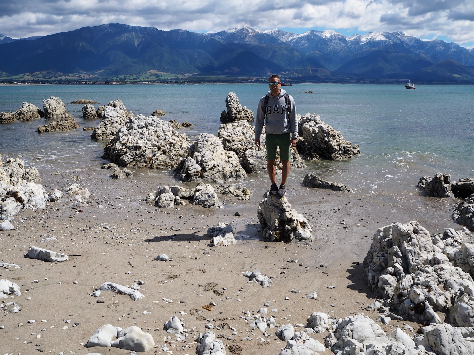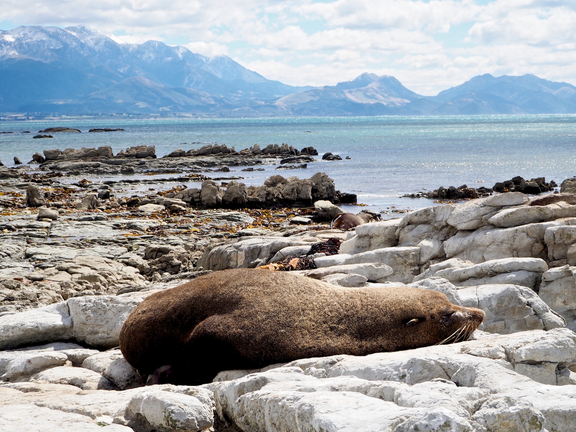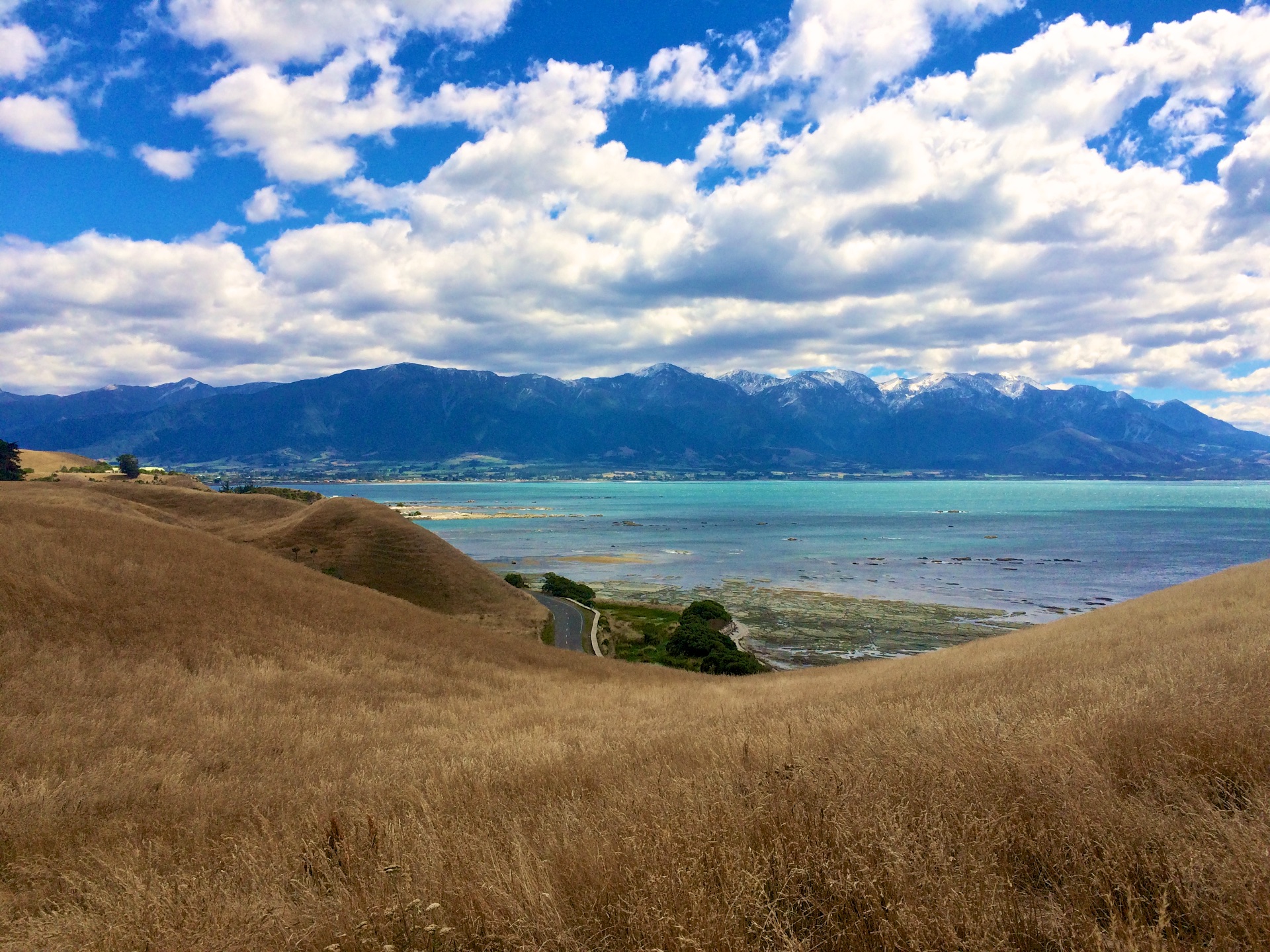 Nuestra primera parada era Kaikoura, pero como bien os iremos contando post a post, en este país no solo importan los destinos, el camino para llegar a ellos normalmente suele ser un espectáculo, y el camino hacia Kaikoura no iba a ser menos, desde Christchurch recorrimos una parte de la carretera de la costa, parándonos a comer y a echar la siesta en una zona con cuatro casas y mucho verde, y ahí ya empezamos a saborear la isla sur, que tiene mucha extensión y poquísima gente, y a cada paso te sientes como si estuvieras explorando la zona.