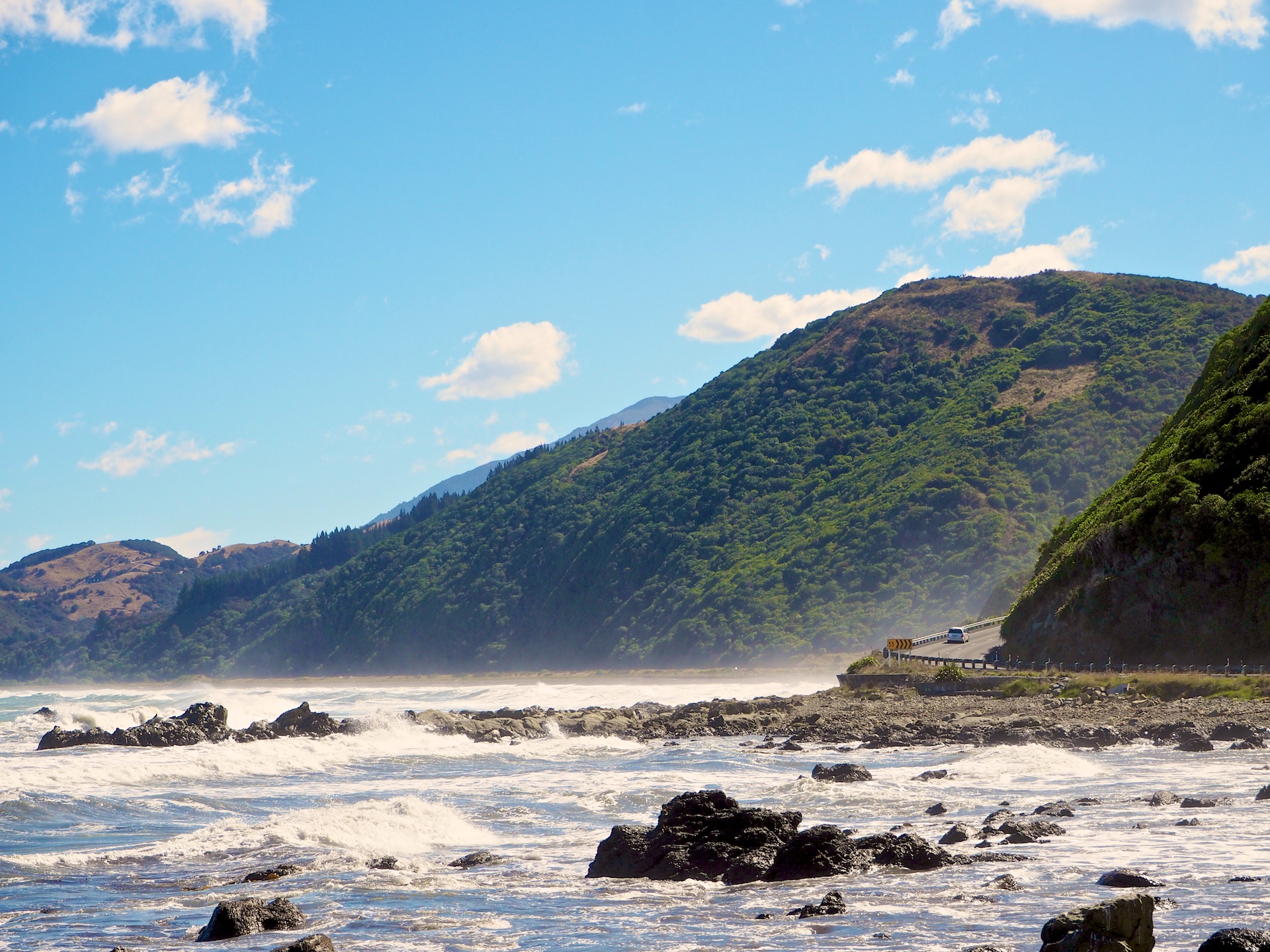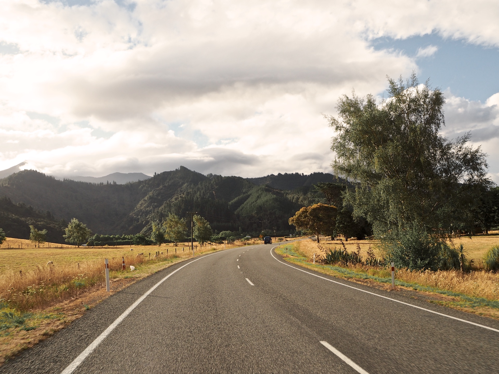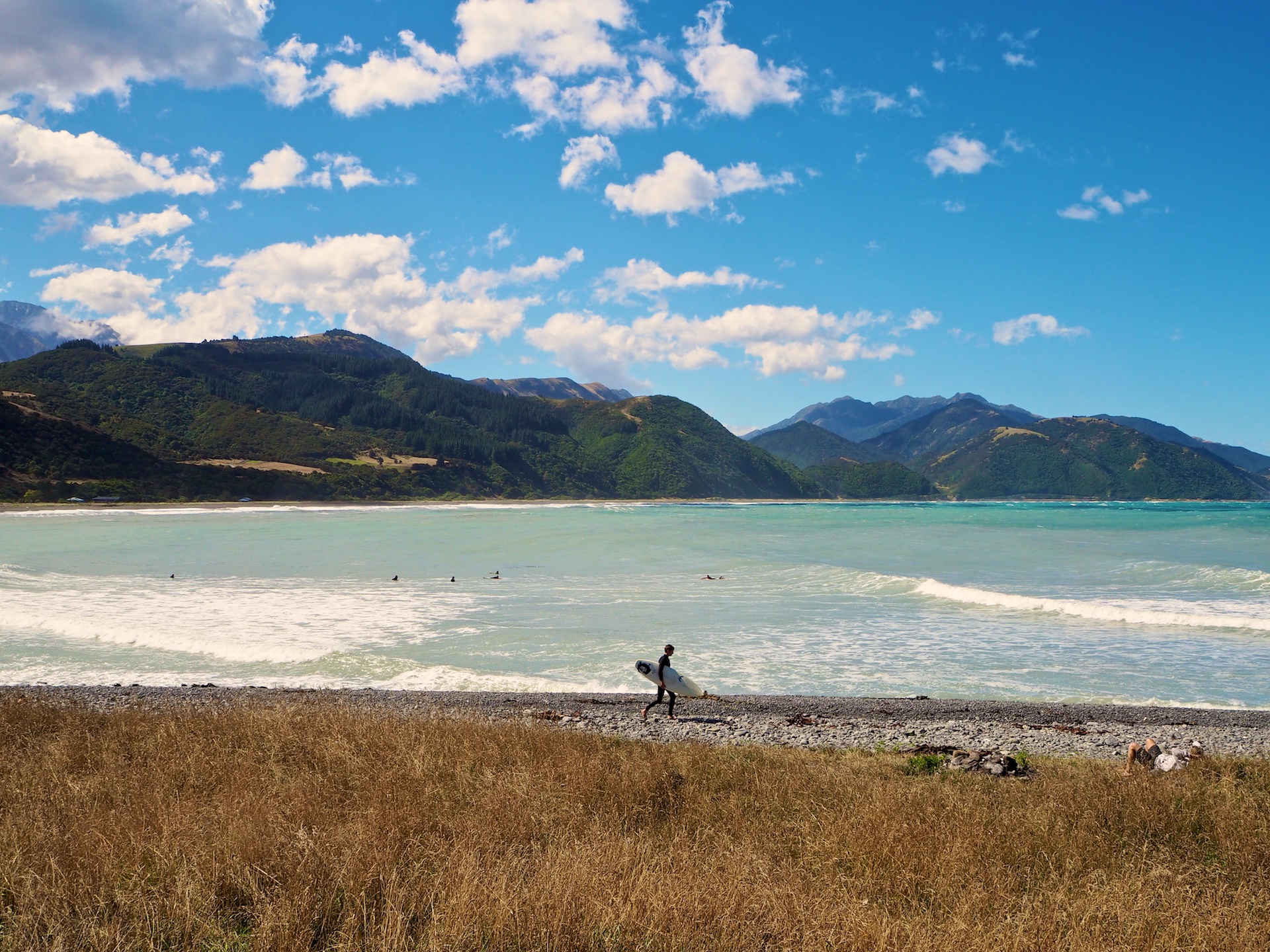 Nuestra primera parada era Kaikoura, pero como bien os iremos contando post a post, en este país no solo importan los destinos, el camino para llegar a ellos normalmente suele ser un espectáculo, y el camino hacia Kaikoura no iba a ser menos, desde Christchurch recorrimos una parte de la carretera de la costa, parándonos a comer y a echar la siesta en una zona con cuatro casas y mucho verde, y ahí ya empezamos a saborear la isla sur, que tiene mucha extensión y poquísima gente, y a cada paso te sientes como si estuvieras explorando la zona.
