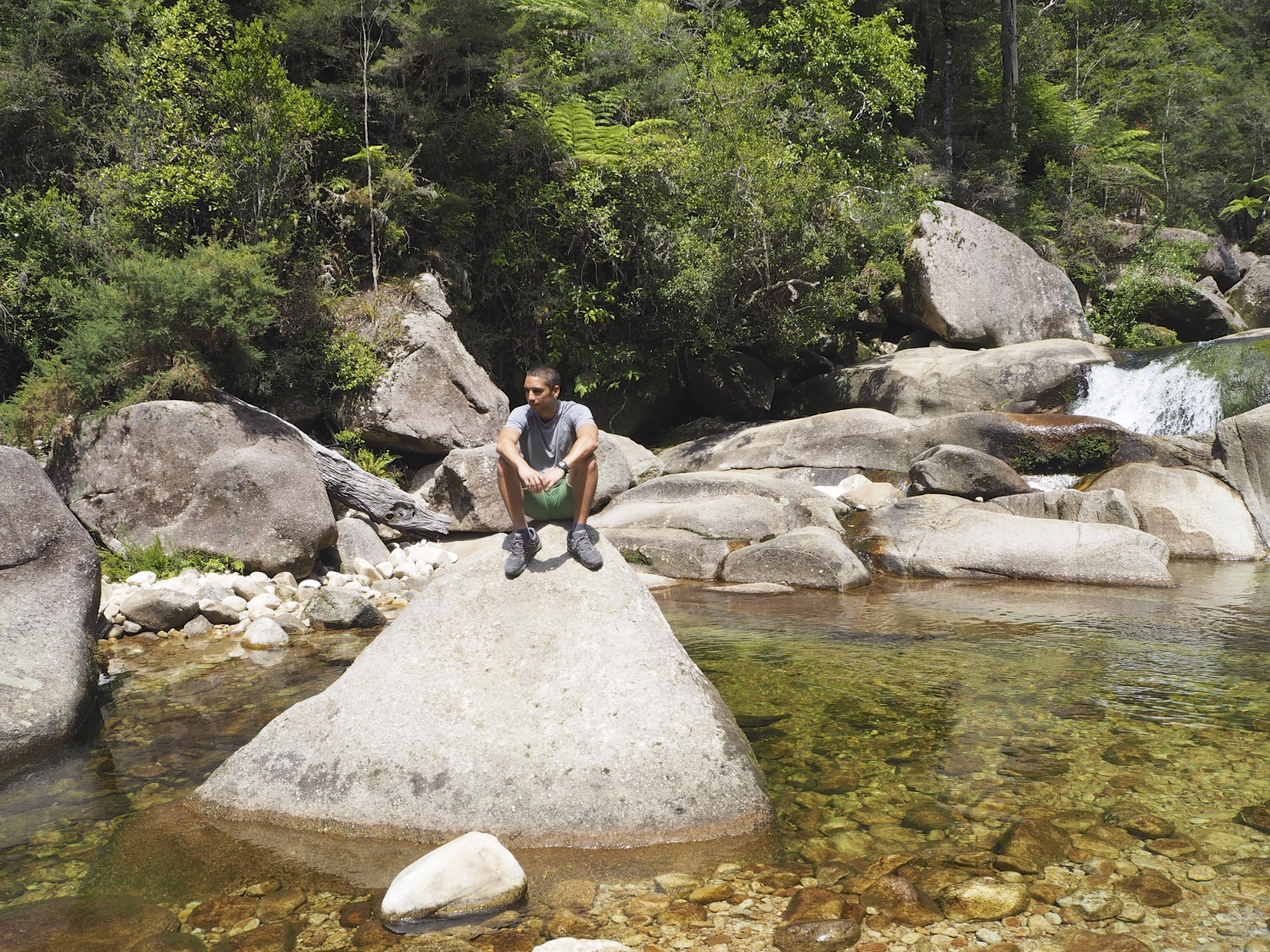 7 horas y 15 minutos después llegamos de nuevo a Marahau, al parking donde nuestra queridísima furgo nos esperaba. Considero que mantuvimos muy buen ritmo durante la caminata, teniendo en cuenta que finalmente fueron 25 km, y que hubieron dos paradas para comer y siesta incluida. Además, como muchos de vosotros sabéis, Marcio es raro que esté más de 5 minutos sin pararse a hacer una foto y ese día no fue la excepción.