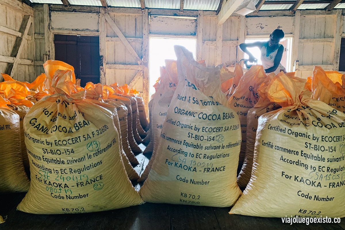 La cooperativa Cecab actualmente distribuye en sacos de 70Kg más de mil toneladas de cacao al año única y exclusivamente a Francia. Esta cooperativa se nutre de cacao procedente de 37 plantaciones diferentes con un total de 2.301 agricultores. Ellos nos comentaban que pertenecer a una cooperativa es un lujo en Santo Tomé, ya que además de asegurarte la venta de tu producto, la propia cooperativa te costea servicios tan importante como por ejemplo la sanidad, no solo al agricultor sino a toda su familia.