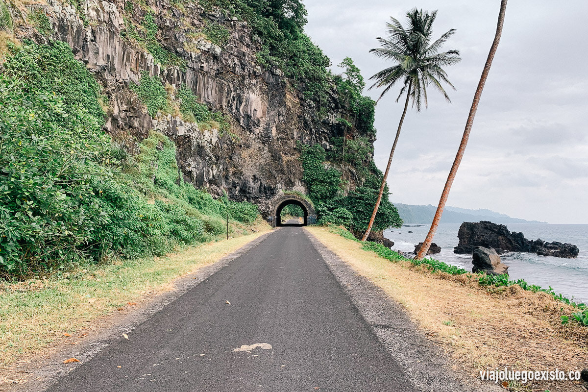 Justo antes de llegar al pueblo de Santa Catarina, en el camino a este final de carretera hay una postal muy característica de este maravilloso país y es un túnel que cruza la carretera, al lado del mar y rodeado de palmeras. Sólo por esta imagen vale la pena bajar hasta este punto. A partir de este pueblo, el resto es selva.