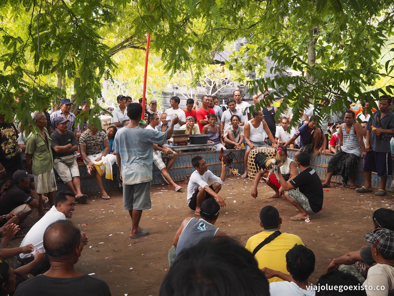 Otro día alquilamos bicicletas por 20.000 IDR cada uno (algo más de 1€) y nos fuimos a la parte norte de Lembongan, y allí visitamos los manglares con una mujer local que nos dio una vuelta en su barca por 30.000 IDR (menos de 2€), y después nos dimos un homenaje comiendo un Jacket Fish gigantesco en un warung cerca del manglar. Ese mismo día volviendo al hostal nos encontramos una aglomeración de mucha gente, estaba disputándose una pelea de gallos, algo típico de algunas zonas rurales de Indonesia.