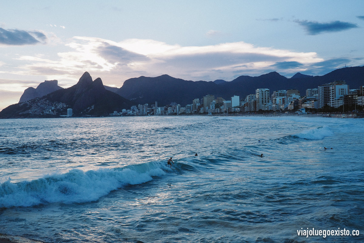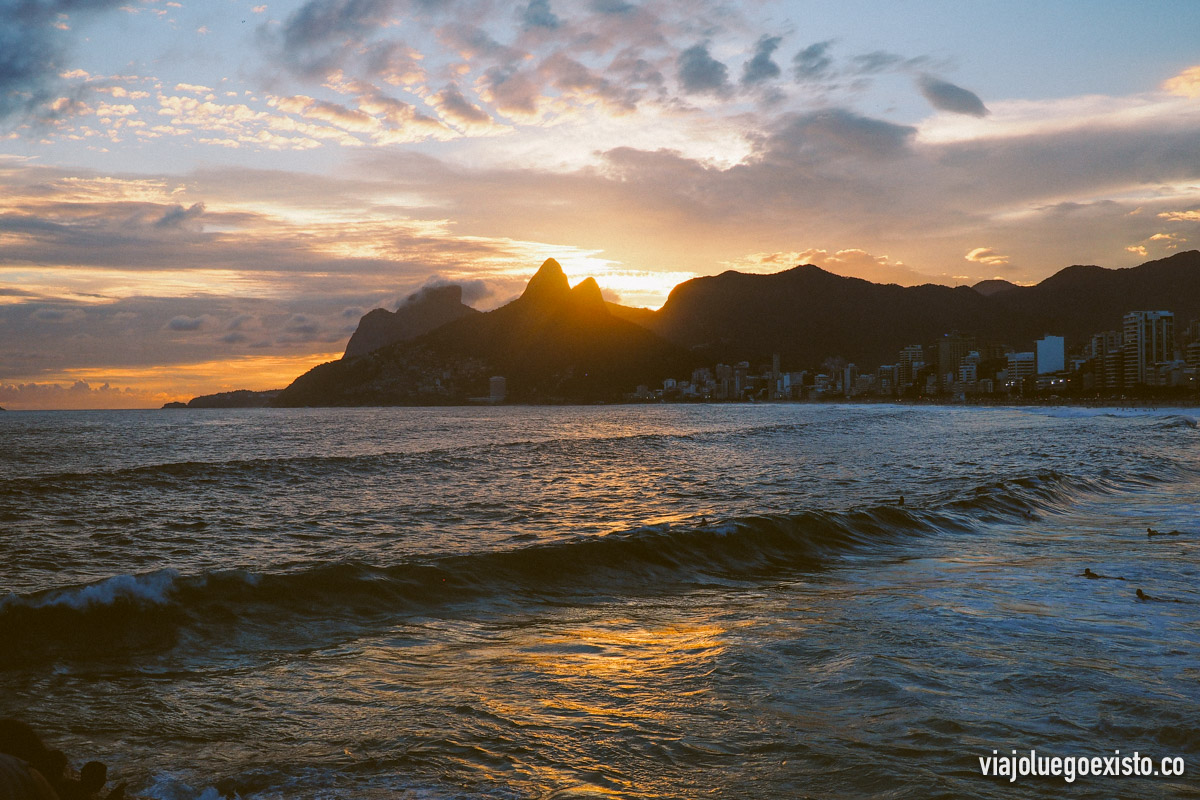Entre las playas de Copacabana e Ipanema hay una roca que se llama Arpoador, donde se ven unos atardeceres increíbles, con el Morro Dois Irmãos de fondo, asomando por detrás los últimos rayos de sol y con los surfistas cogiendo las últimas olas del día en la playa de Ipanema.