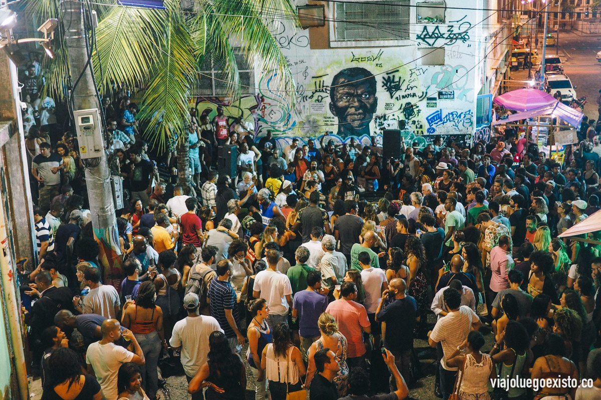En definitiva Piedra do Sal es el templo de la samba en Río de Janeiro. Además de la música y el buen ambiente, alrededor hay puestos de comida y bebida y también vendedores ambulantes, así que no te va a faltar de nada. Te recomiendo que te sitúes en la escalera que sube del fondo (desde donde hice la foto), ya que podrás tener mejores vistas y estarás más tranquilo.