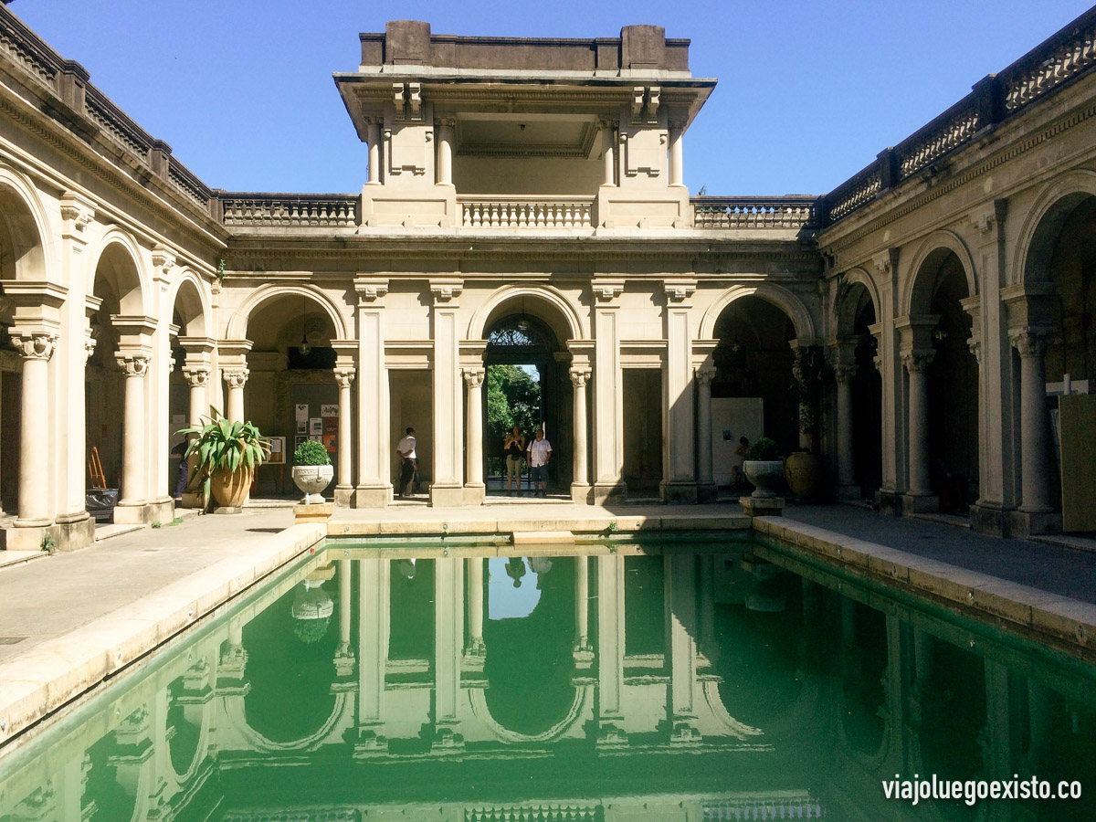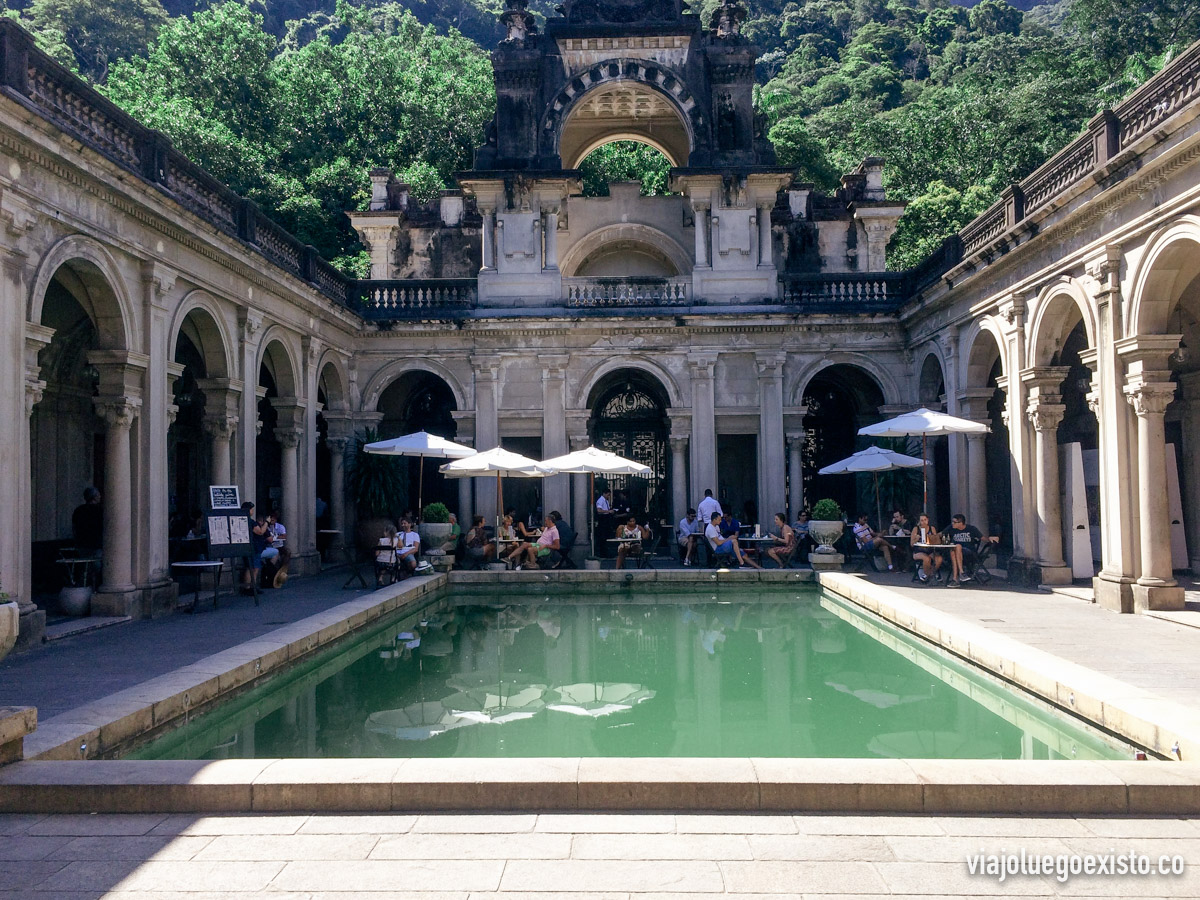 Nosotros llegamos en bicicleta como te he contado en el anterior plan, aunque también puedes llegar en Uber. Una vez allí visitamos el acuario y comimos en el patio de la Escola de Artes Visuales do Parque Laje, un precioso edificio con un patio central y un estanque.