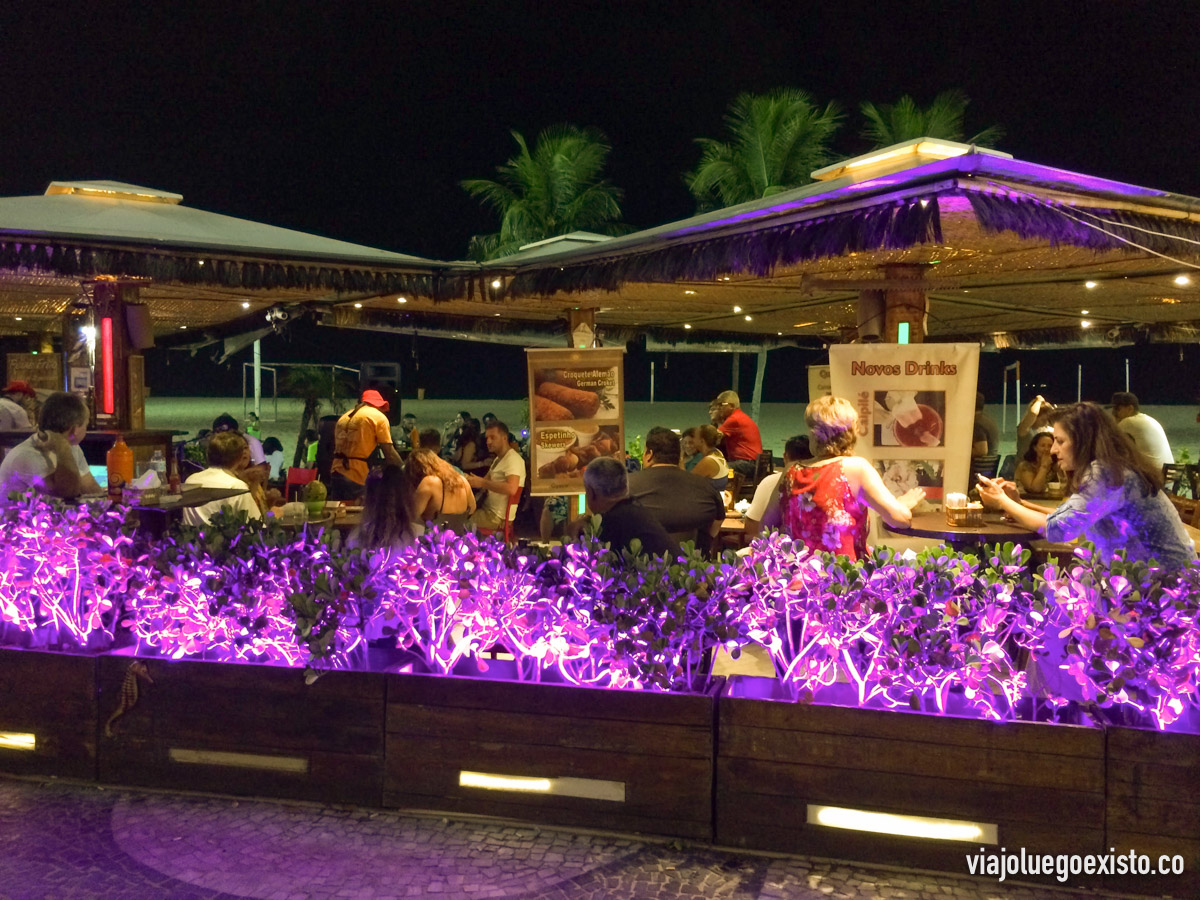 Como te he comentado anteriormente, tanto Copacabana como Ipanema tienen lo que ellos llaman "kioskos" por todo el paseo marítimo frente a la playa, en los kioskos sirven comida y bebida durante todo el día y algunos de ellos tienen muy buena fama, yo te recomiendo uno de Copacabana que se llama Gosto do Mar, donde se come bien y suele haber buena música en directo, y todo a pie de playa.