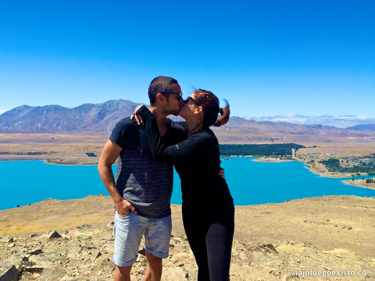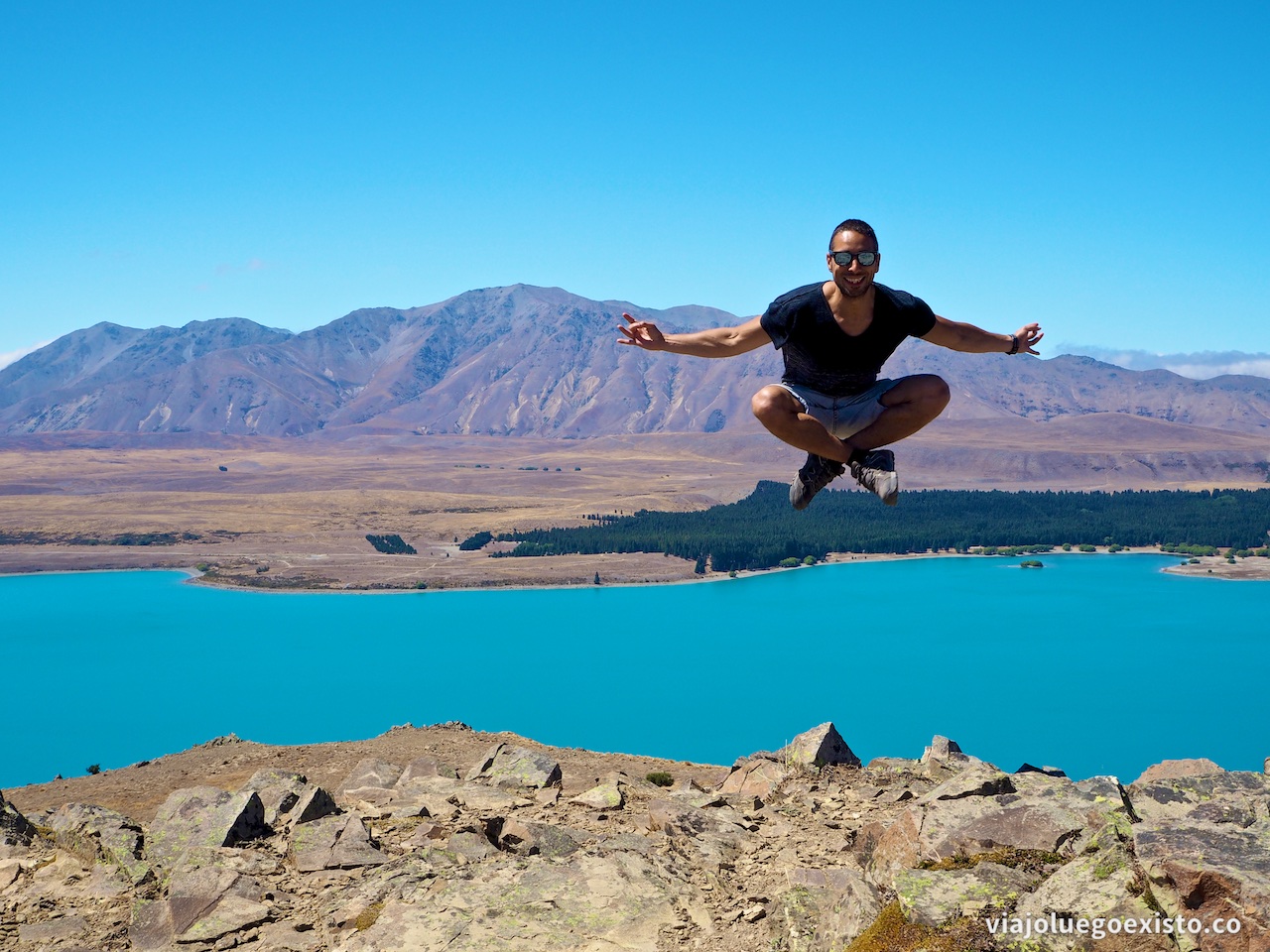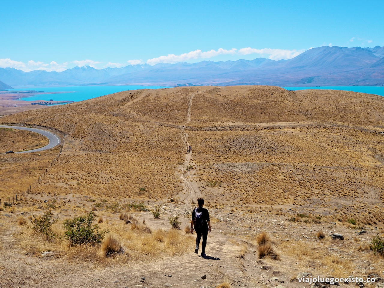 La ruta que escogimos se llama Mount John Walkway, la más larga que puedes hacer por la zona. Son 3 horas y media de trekking, yendo por un sendero que sube hasta el observatorio del Mount John y volviendo bordeando el lago Tekapo para tener unas vistas escénicas de 360 grados del mismo.