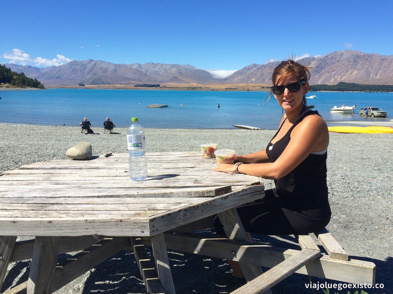 Después de pegarnos una comilona a base de ensalada de pasta, que después de hacer hambre con el trekking nos sentó de maravilla, nos pusimos rumbo a la costa este de Nueza Zelanda, y aquí tuvimos uno de los pinchazos más grandes de todo el país y posiblemente de todo el viaje.