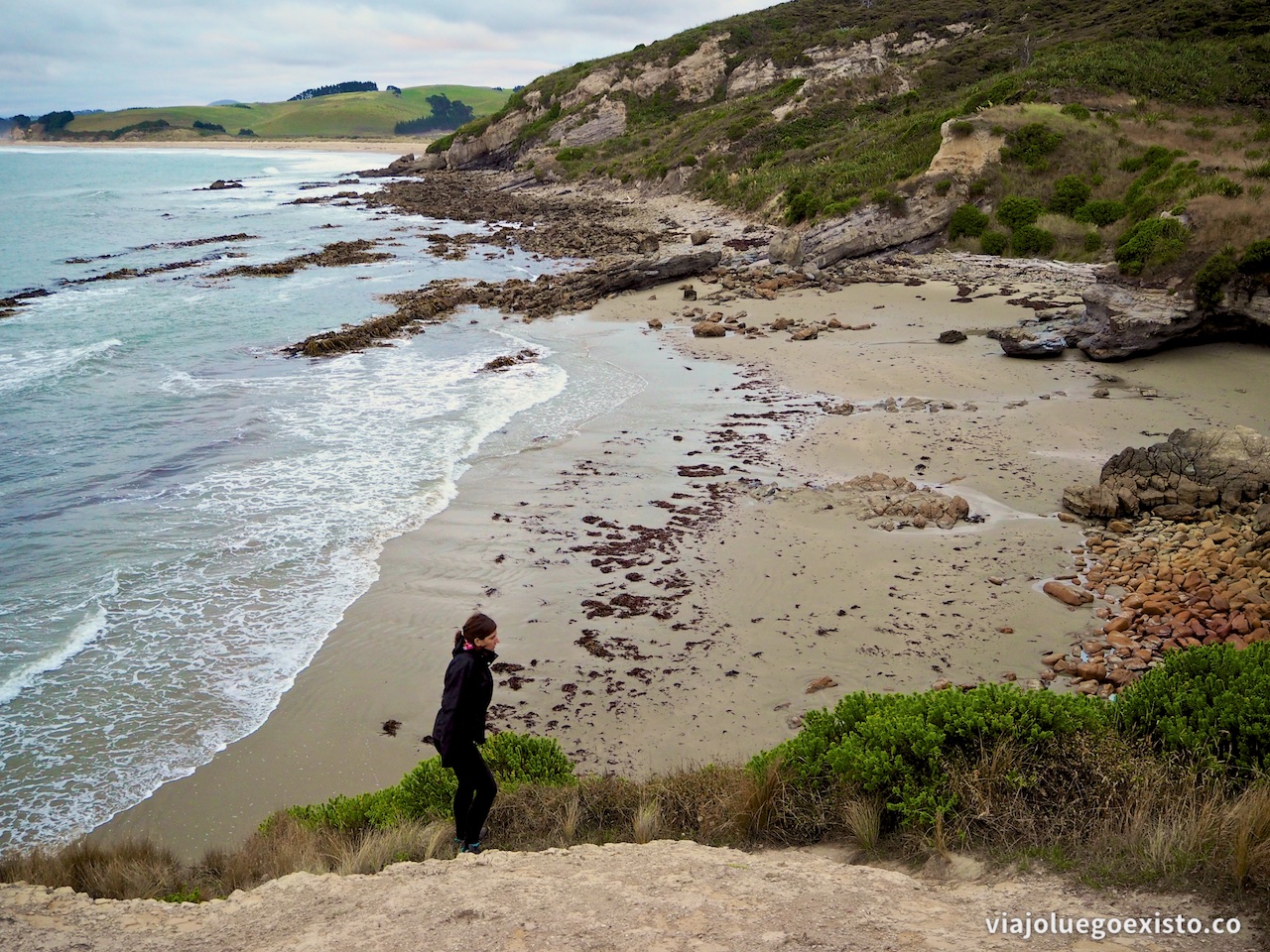 Con ese regustito amargo que nos dejaron 'las piedras' nos fuimos a Shag Point, que se encuentra a sólo 15 minutos en coche de las Moeraki Boulders, y que habíamos leído que al atardecer se podían ver los pingüinos yellow-eyed, que están en peligro de extinción, considerada la más rara del mundo y que sólo habita en Nueva Zelanda.